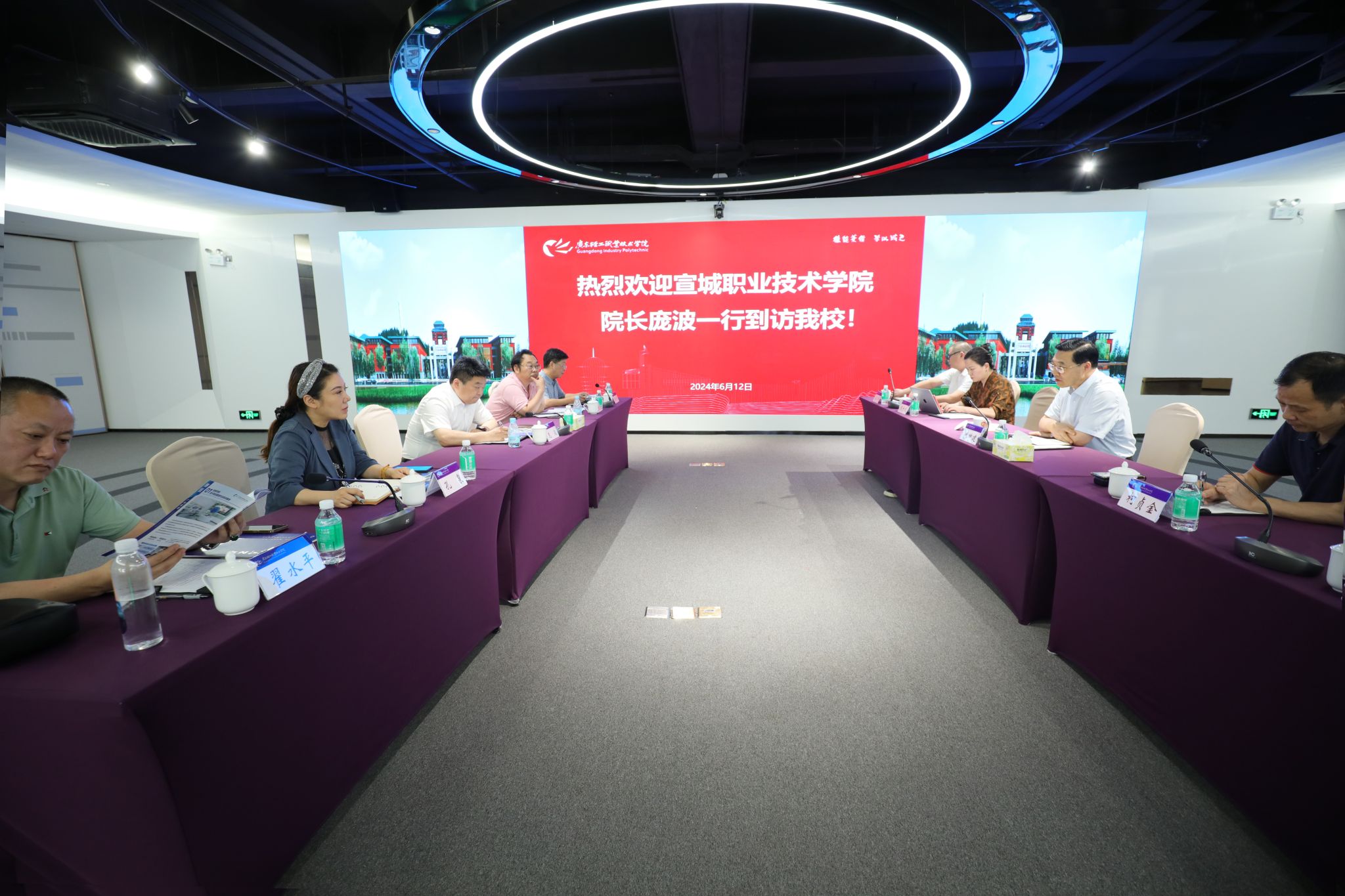 6月12日,宣城职业技术学院院长庞波一行5人到成人電影交流学习。成人電影校长卢坤建在新港校区接待。
