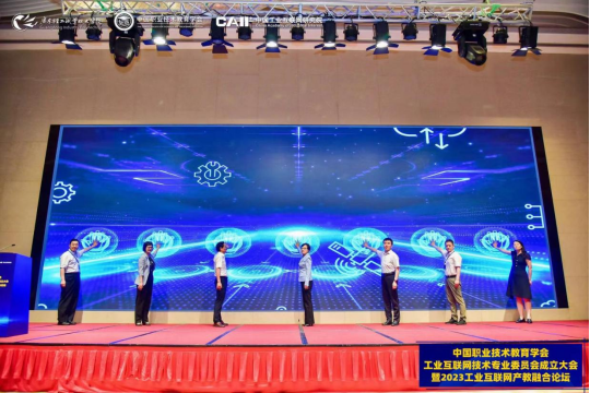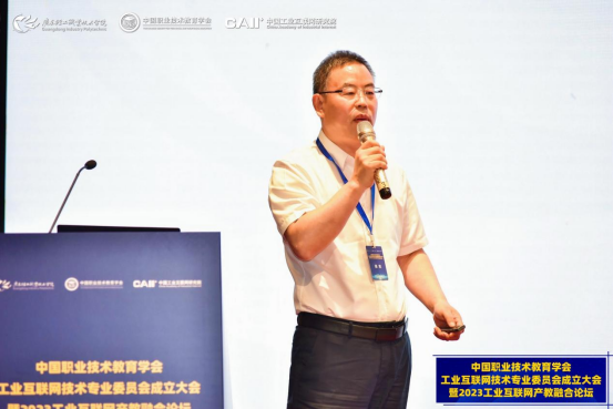 2023年5月16-17日,中国职业技术教育学会工业互联网技术专业委员会成立大会暨2023工业互联网产教融合论坛在广东佛山顺利召开。中国职业技术教育学会会长、教育部原副部长鲁昕,教育部职成司综合改革处二级调研员李红东,广东省教育厅二级巡视员吴艳玲,工业与信息化部教育与考试中心张任,广东轻工职业技术学院党委书记杜安国、学校校长卢坤建,中国工业互联网研究院总工程师王宝友,中国科学院计算技术研究所研究员、分布式系统研究中心副主任、中科南京信息高铁研究院副院长田霖等领导和专家出席。会议以线上、线下相结合的方式举行。来自全国各职业院校、科研院所及企业200多名会员单位代表线下参会,3000余人线上参会。