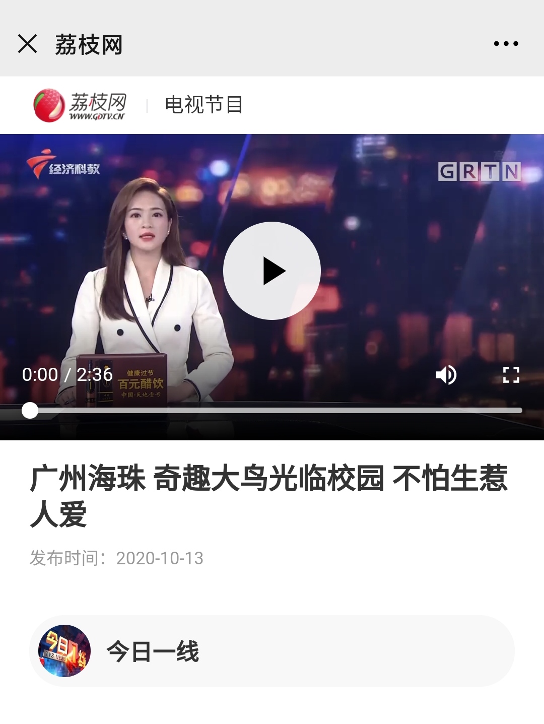 南方TV《今日一线》:广州海珠 奇趣大鸟光临校园 不怕生惹人爱