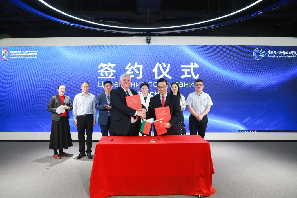 在签约仪式中,卢坤建与伊戈尔·沃伊托夫代表两校签署了合作协议及应用技术联合实验室共建协议,并为应用技术联合实验室揭牌。广东省“一带一路”职业教育联盟聘请伊戈尔·沃伊托夫校长为联盟顾问,卢坤建理事长代表联盟向其颁发聘书。