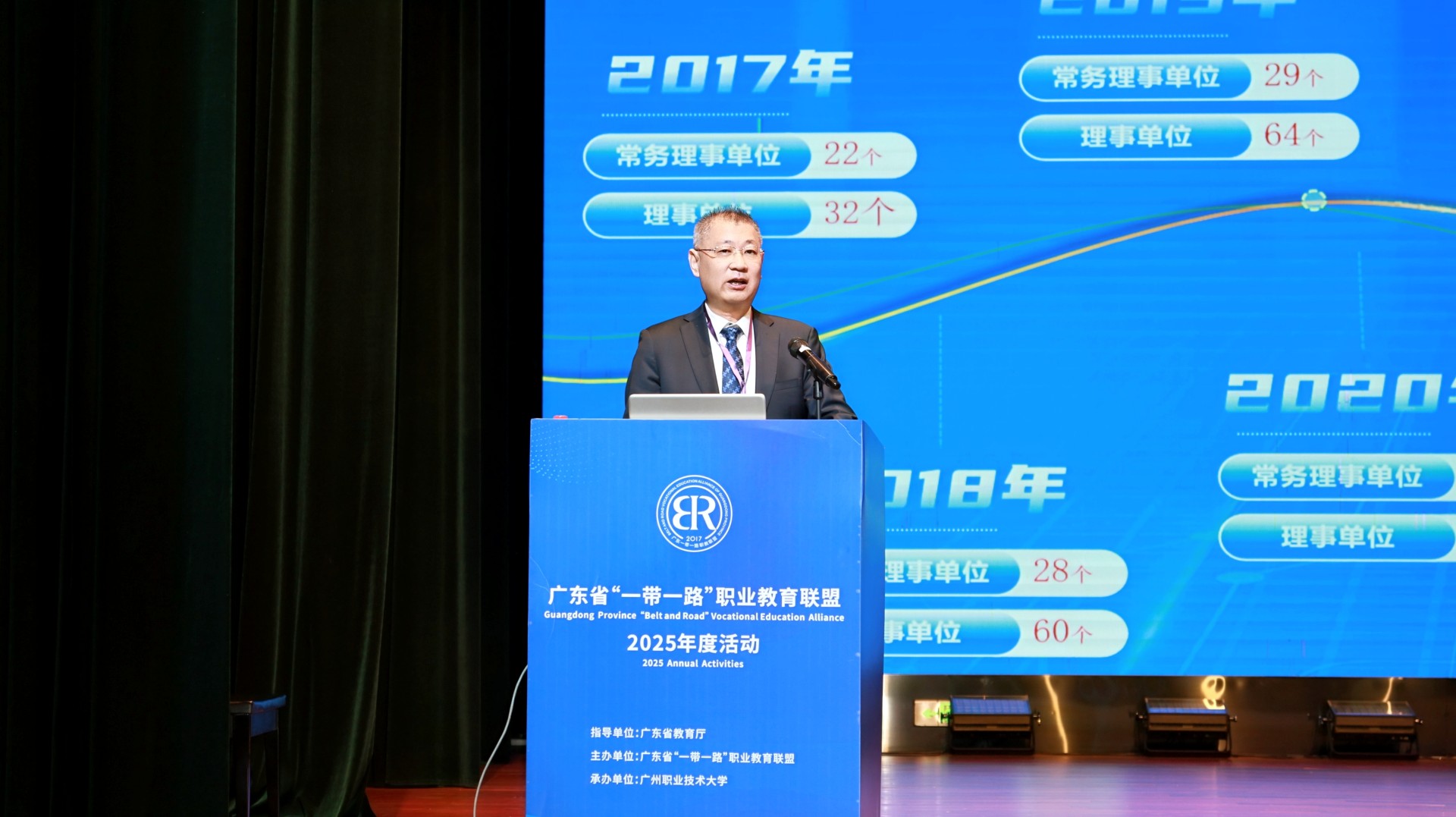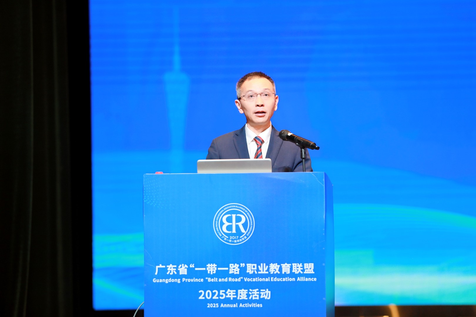 杨欣斌作2025年度联盟工作报告,系统总结了一年来职教联盟在推动职教国际交流、标准输出、资源共建等方面取得的丰硕成果,提出未来发展的核心方向与重点任务。并表示学校将以更积极主动的姿态,带领联盟成员单位构建全方位、多层次的国际交流合作新生态