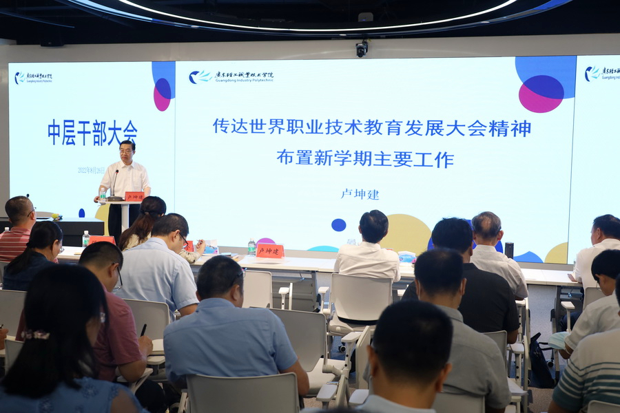 卢坤建在会上阐述了首届世界职业技术教育发展大会召开和《天津倡议》发布对职教发展的重要意义,部署了下半年学校主要工作任务。一是加强党建思政工作,写好巡察整改后半篇文章;二是聚焦“双高”“申本”两大核心任务,全力推动高质量发展;三是完善学生工作体系,提高学生满意度;四是加强专业群建设,培养高质量技术技能人才;五是强化人才队伍建设,推进人事制度改革;六是深化产教融合,全面推动现代产业学院建设;七是健全学校治理体系,提升依法治校水平;八是加快基础设施建设,推动教育品质升级;九是守住底线筑牢防线,扎实做好校园安全稳定工作。