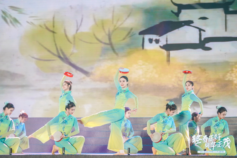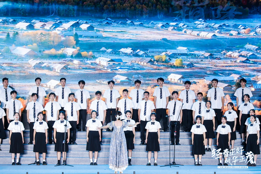 晚会以“轻春正好,风华正茂”为主题,通过鼓舞、合唱、情景剧、舞蹈、粤剧、朗诵、服装秀等多种艺术形式,彰显了成人電影学子们自信昂扬的精神风貌,表达了对2022级新生同学们的美好祝福,激励同学们握紧轻春接力棒,争做梦想奋斗者。