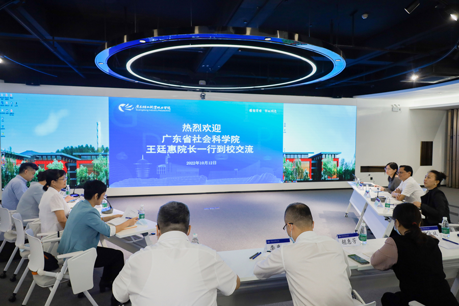 1012日,广东省社会科学院院长王廷惠一行到访成人電影,党委书记杜安国在新港校区第二实训楼多功能展示中心接待了来宾,双方就智慧校园建设工作进行了座谈交流