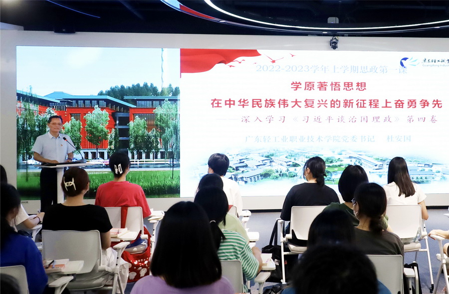“你们的师兄师姐在战火纷飞的年代里依然能坚守初心,乘风破浪成长为国之栋梁,为国家社会发展作出巨大贡献,你们也一定可以。”9月22日下午,学校党委书记杜安国在第二实训楼校史馆为德语211班、日语211班学生讲授了题为“学原著 悟思想 在中华民族伟大复兴的新征程上奋勇争先——深入学习《习近平谈治国理政》第四卷”的思政第一课。