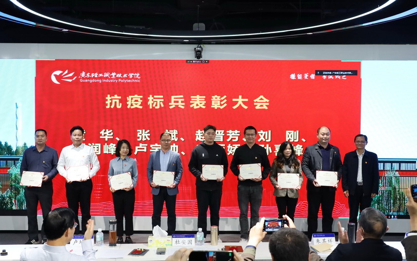党委副书记梁艳珍宣读了《广东轻工职业技术学院关于表彰抗疫标兵的决定》,授予张斌等18名同志抗疫标兵荣誉称号,通过表彰先进、树立典型,引导全校师生以更加坚定的信念,更加饱满的热情,更加振奋的精神,更加昂扬的斗争,攻坚克难、奋勇拼搏,为学校各项事业发展贡献力量。