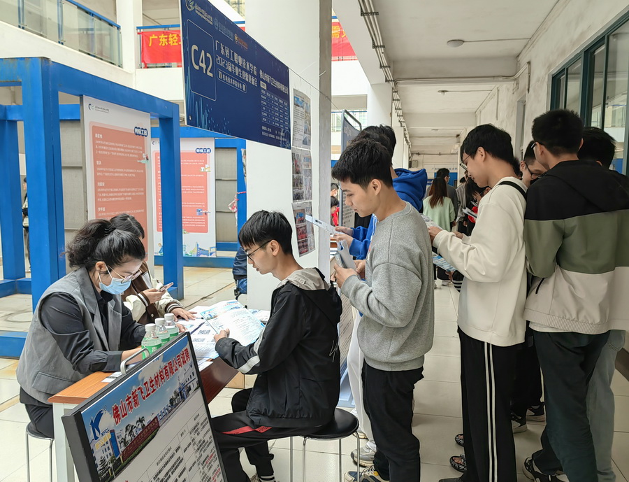 机电学院专场招聘会上,精心准备的毕业生和求贤若渴的企业实现了“双向奔赴”。天马微电子、佛山金银河智能装备、广东利元亨、广东华南特种气体研究所、广东鼎湖山泉、广东敏卓机电等60家知名企业入场求贤,共提供岗位数2293个。据了解,当天各企业平均收到毕业生简历50余份。技术技能型突出人才普遍受到企业青睐,有企业对获得过省级技能竞赛一等奖以上的毕业生开出了起薪11000元/月的薪金,引人瞩目。现场有企业代表表示,“大环境下就是市场抢人”,在技术技能型人才供给上,高职院校有天然优势,成为不少智能制造企业寻找“人才生力军”的首选。