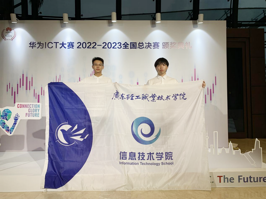 4月13日,“华为ICT大赛2022-2023全国总决赛颁奖典礼暨人才联盟伙伴年会”在海南三亚隆重举行,并同步现场直播。信息技术学院云计算202班梁嘉豪、通信201班苏健明(指导老师:李丹)在大赛实践赛云赛道中获高职组唯一特等奖,并成功晋级“华为ICT大赛全球总决赛”。