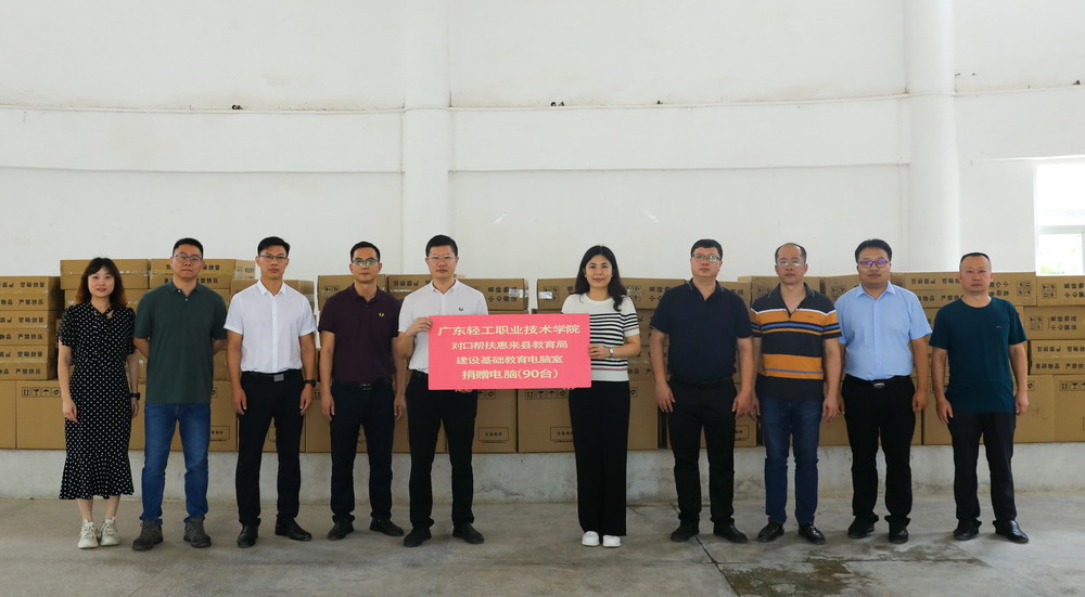 同日,为助力惠来县基础教育高质量发展,梁艳珍代表学校向惠来县教育局捐赠了电脑 90 台,惠来县教育局局长周伟等相关人员参加捐赠仪式。