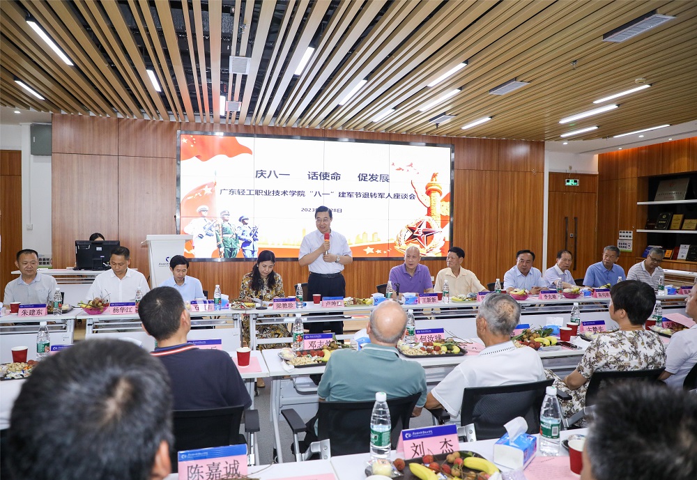 为纪念“八一”建军节,庆祝中国人民解放军建军96周年,7月28日上午,学校在广州新港校区第二实训楼六楼B604室召开2023年“八一”建军节退转军人座谈会,学校校长卢坤建、党委副书记梁艳珍出席。