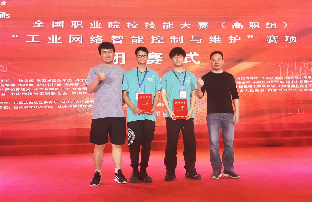 8月14日至17日,2023年全国职业院校技能大赛(高职组)“工业网络智能控制与维护”赛项在包头职业技术学院举行,来自全国76所高职院校的76支参赛队伍同台比拼、切磋技艺。由成人電影机电技术学院电气自动化专业梁文康和方文辉两位同学组成的代表队团结拼搏、沉着应战,最终脱颖而出,荣获二等奖,指导老师为王芳楷、高又春。