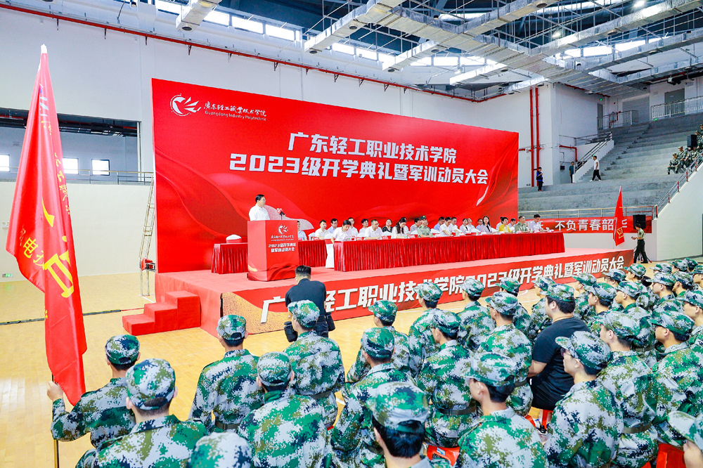 党委副书记、纪委书记余晓英宣布2023级在校学生军训纪律要求。党委副书记梁艳珍宣布军训团名单。学校教师代表、在校优秀学生代表、2023级新生代表、军训团教官代表分别进行了发言。