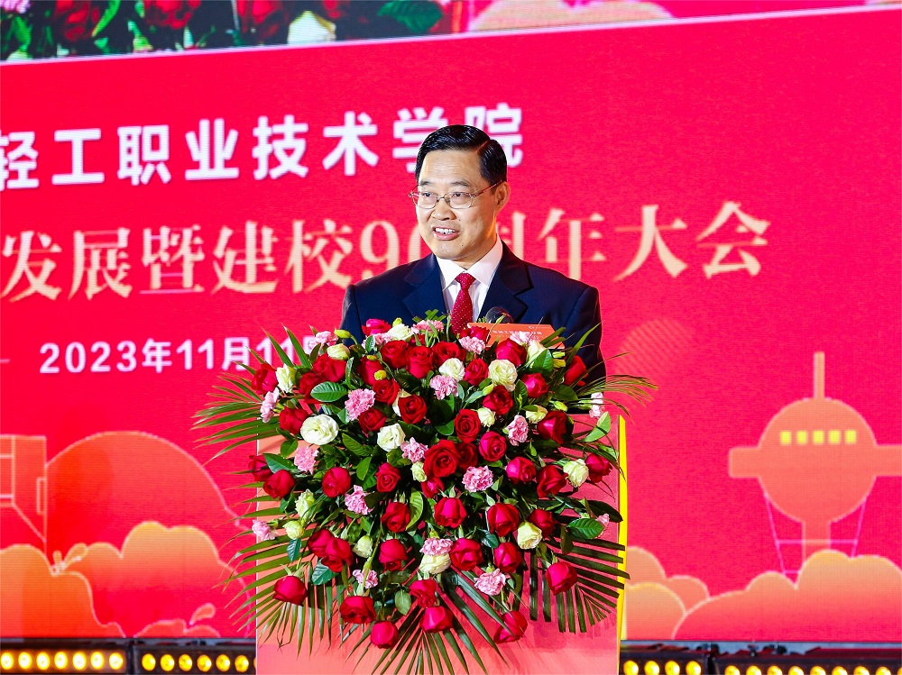 佛山市委副书记、市长白涛,中共广东省委机构编制委员会办公室副主任刘光大,广东省委教育工委委员、省教育厅党组成员、副厅长冯伟,原广东轻工业厅厅长、广东轻工业联合会原会长杨大行,广东中华职业教育社常务副主任、广东省人民政府参事赵鹏飞等领导出席大会。多名院士为学校发来视频祝词。中国轻工联合会副会长、广东省轻工联合会会长廖鸣卫,华为中国政企教育医疗系统部总裁卢永平,深圳职业技术大学党委副书记、校长许建领,学校校友会常务副会长、机电9001毕业生叶志锋以及学生代表分别在大会上致辞。