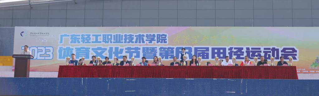 2023年学校体育文化节暨第63届田径运动会于11月23日在南海校区拉开帷幕。学校党委书记杜安国党委副书记、纪委书记余晓英,党委副书记梁艳珍,副校长廖俊杰、李荣、官春平,相关职能部门各二级学院及中职部负责人等参加开幕式。