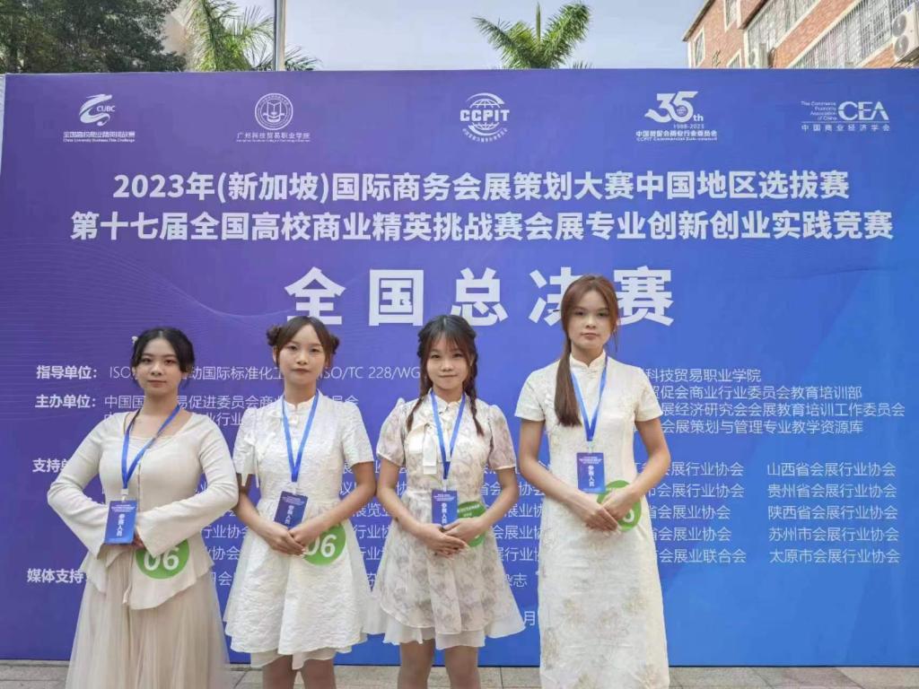在会展活动项目策划赛道,管理学院会展学子组建的“为和茶策划”团队(成员:邓文婷、芦幸儿、覃宝怡、麦嘉霖,指导老师:许欣、范智军)斩获一等奖。该团队还在全国总决赛现场成功拿下了2024年新加坡国际商务会展策划大赛的入围资格,为学校赢得了荣誉。