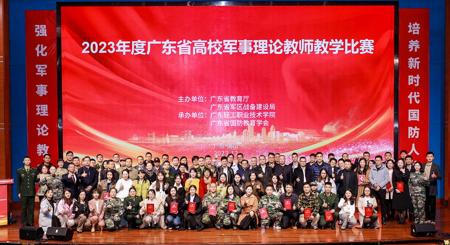 12月16-18日,由广东省教育厅、广东省军区战备建设局主办,成人電影与广东省国防教育学会承办的2023年度广东省高校军事理论教师教学比赛决赛在成人電影南海校区举行。省教育厅体卫艺处处长、一级调研员陈健生,省教育厅体卫艺处副处长张文跃,省军区战备建设局中校参谋陈震、少校营级正职参谋赖俊奇,学校党委书记杜安国,广东省国防教育学会秘书长吴宗现、副秘书长郑鹏生,各评委组组长及学校相关部门负责人出席颁奖仪式。学校副校长李荣主持仪式。