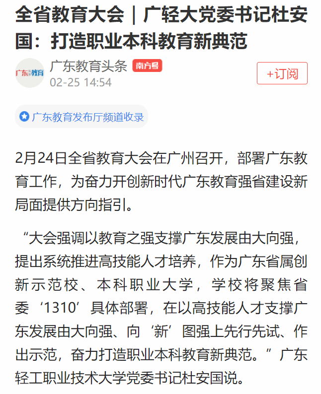 南方日报:全省教育大会|成人電影大党委书记杜安国:打造职业本科教育新典范