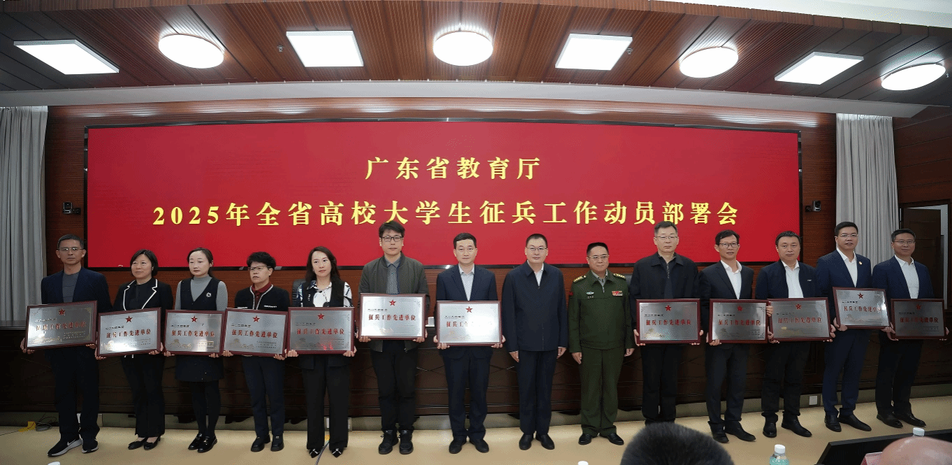 会上,学校连续6年获得广东省“征兵工作先进单位”荣誉称号,副校长李荣代表学校出席会议并上台领奖。(图/文 武装部)