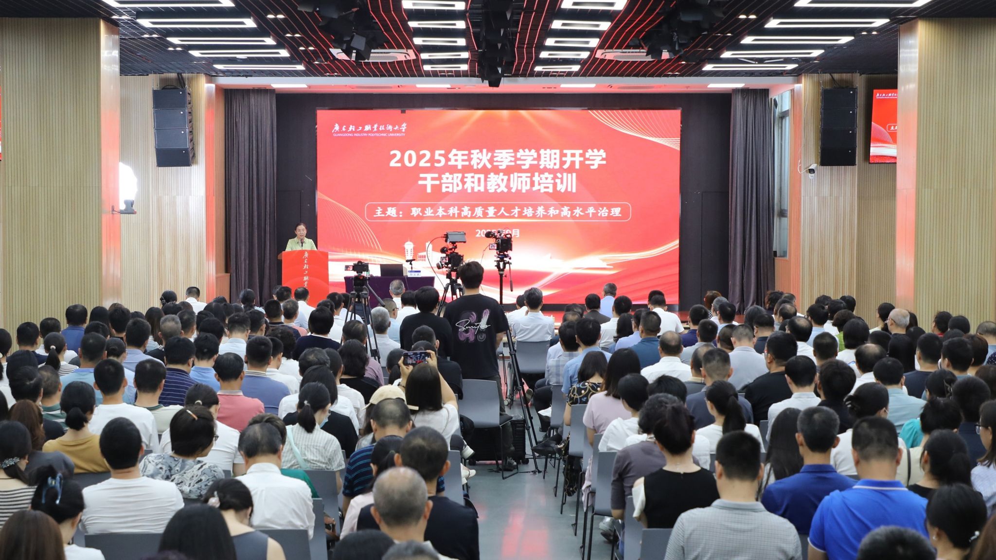 9月4—5日,学校以“本科职业技术大学高质量人才培养和高水平治理”为主题开展新学期教职工培训,邀请专家学者作专题报告。会议设有新港校区商演中心主会场和南海校区、琶洲校区等6个分会场。学校党委书记陈爽作动员、总结讲话。校长杨欣斌总结2025年以来的工作并作新学期工作部署。副校长李荣、官春平出席并主持会议。