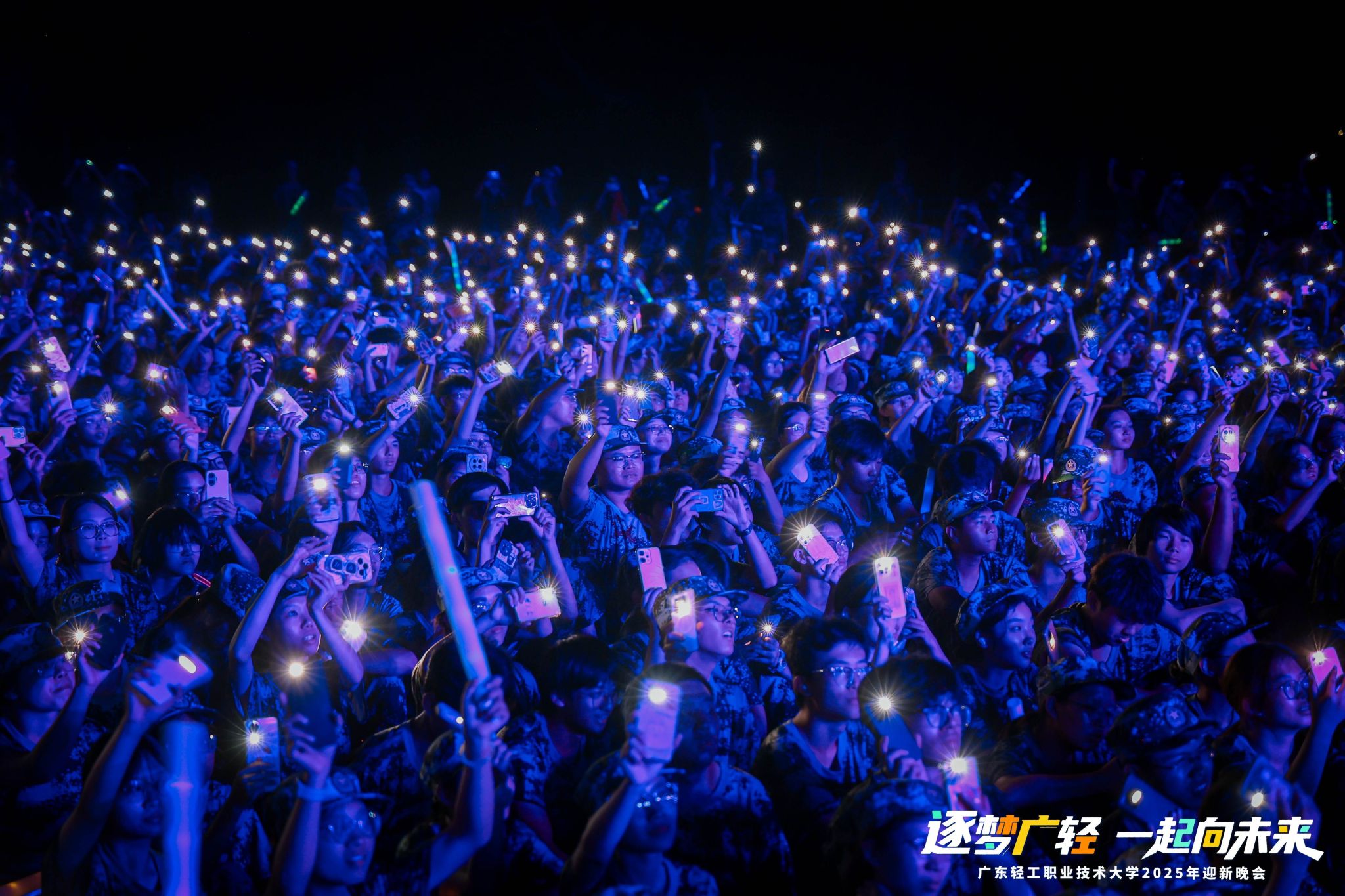 相关职能部门负责人,各学院党委(党总支)书记副书记、辅导员、班主任2025级新生超万人参加晚会。(图文:校团委)