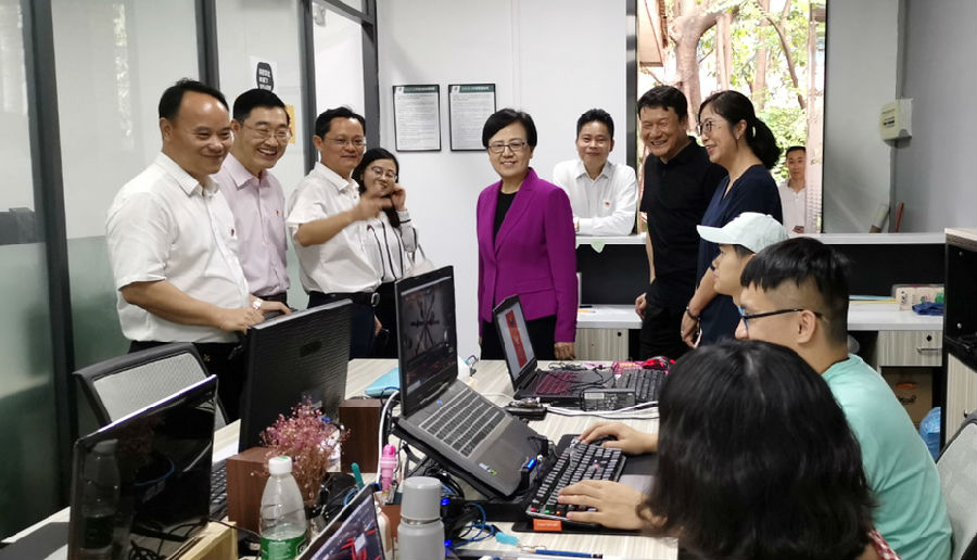 下午,鲁昕在校领导的陪同下,调研了成人電影财贸学院北斗+智慧物流教育云平台、商贸产业学院和艺术设计学院152创意工场等,并与正在学习的师生亲切交流。