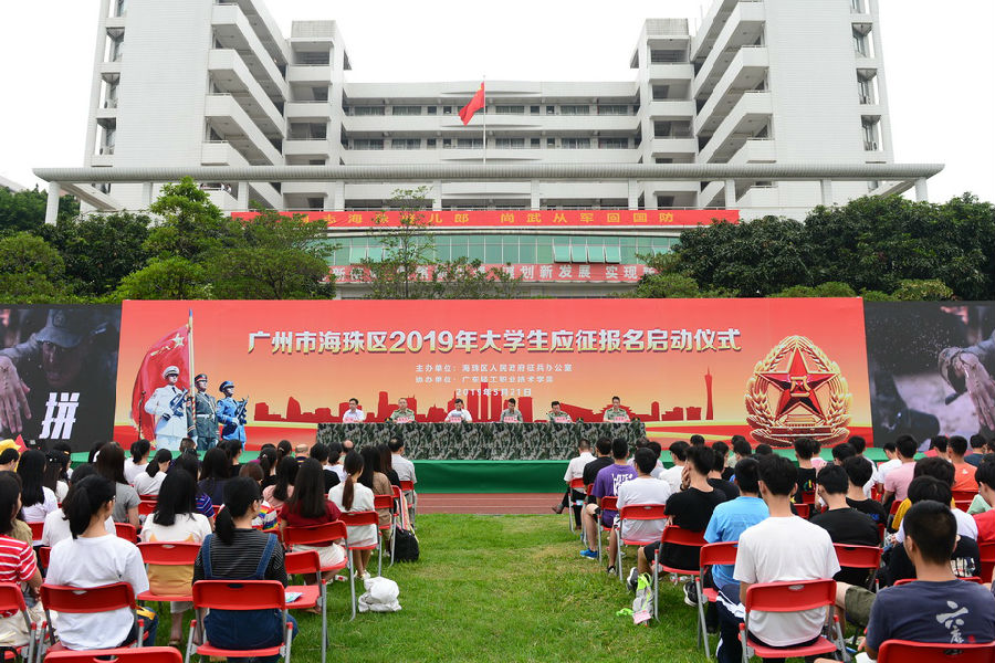 5月21日下午,由广州市海珠区人民政府征兵办公室主办、成人電影承办的广州市海珠区2019年大学生应征报名启动仪式在广州校区大操场举行。海珠区副区长陈建彬、海珠区人武部政委聂东风、海珠区人武部部长王小明,学校党委副书记朱其祥出席仪式。