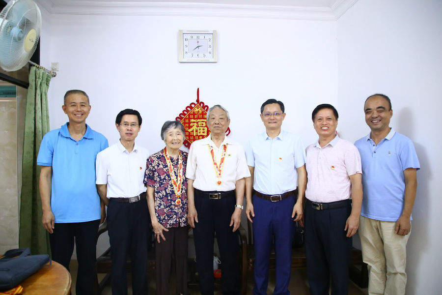 罗炯辉和庄扬都是建国前投身革命工作,并分别于上世纪50年代和70年代入校工作。杜安国与两位老同志促膝交谈,详细询问他们的身体状况及晚年生活,并为他们佩戴上由中共中央、国务院、中央军委颁发的“庆祝中华人民共和国成立70周年”纪念章,向他们致以崇高敬意和亲切问候。