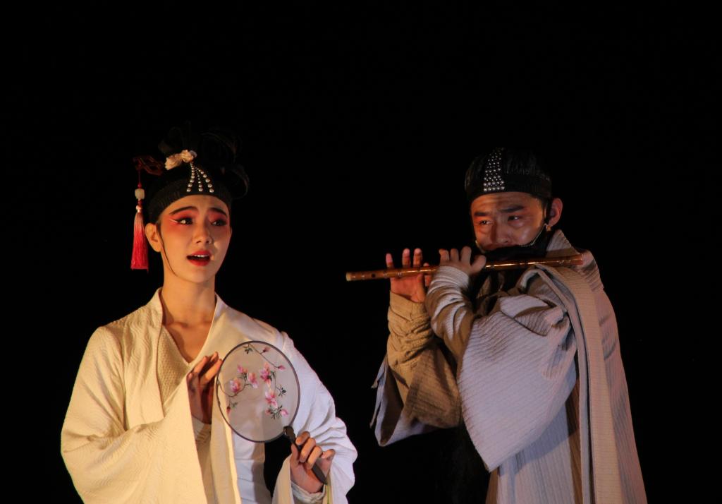 当晚,“2019高雅艺术进校园”优秀作品在成人電影广州校区大礼堂上演,中央戏剧学院表演了话剧《桃花扇》,为成人電影师生奉献了一场高雅文化艺术盛宴。杜安国、卢坤建等校领导一同观看了本场演出。