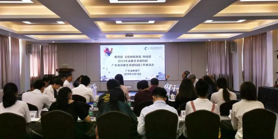 10月18日上午,教育部调研组、广东省教育厅在成人電影组织召开调研“高雅艺术进校园”工作座谈会。调研组组长、教育部艺术教育委员会常委、中国艺术教育促进会副会长张凯华,教育部艺术教育委员会常委、东北师范大学音乐学院原院长、教授尹爱青、辽宁省教育厅学校安全与体卫艺处调研员王秋鹏、教育部艺术教育委员会委员、中国艺术教育促进会执行秘书长梁建敏、中国戏曲学院继续教育部(戏曲艺术教育中心)主任、副教授姚志强、清华大学社会学教授刘精明,广东省教育厅副巡视员邱克楠,广东省教育厅体卫艺处副处长林柏春、广东省教育厅相关领导出席座谈会,成人電影党委书记杜安国在会上致辞。