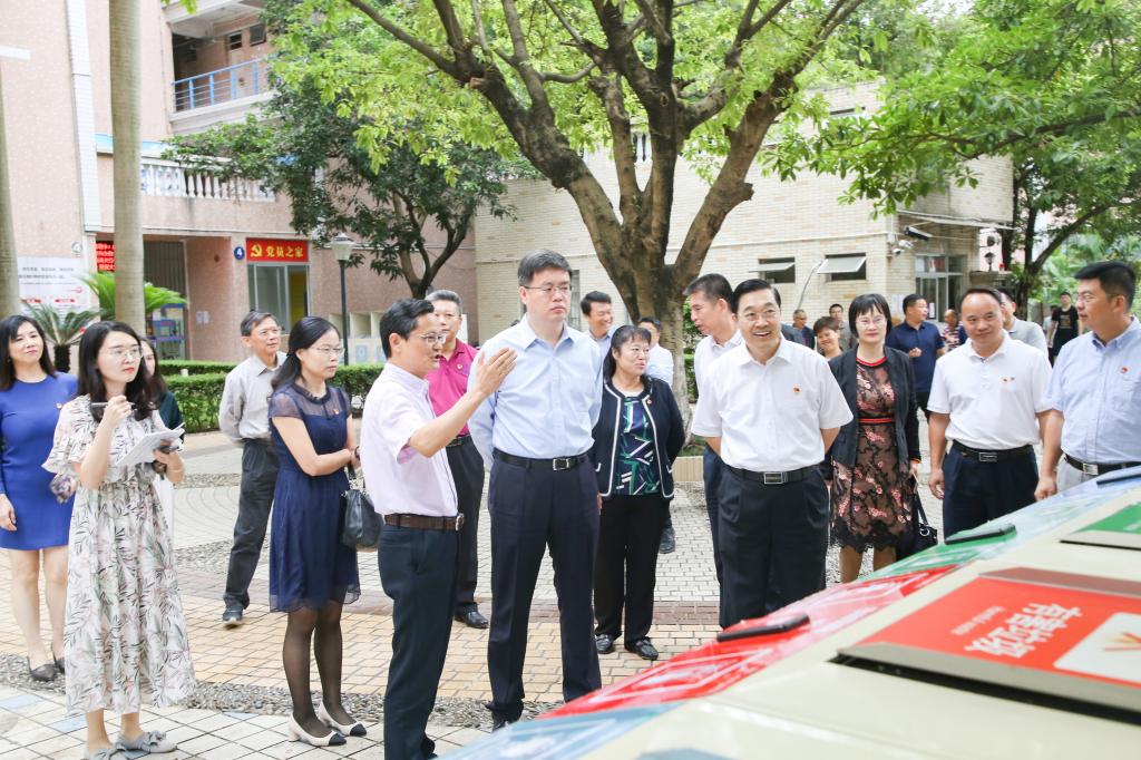 覃伟中现场调研参观成人電影互联网+智能垃圾分类系统、多功能文化食堂、校史馆、商贸产业学院、北斗+智慧物流实验室等。