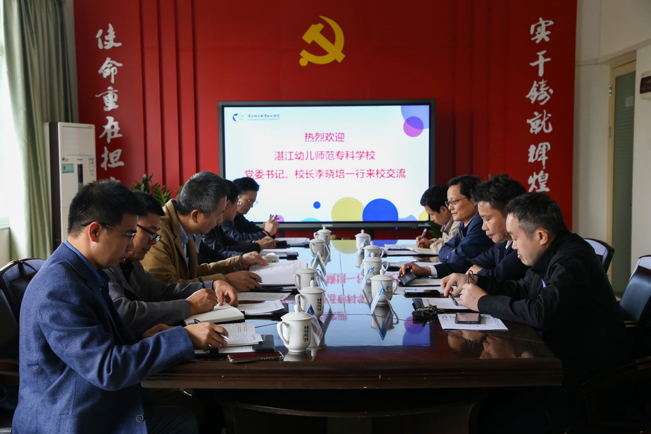 11月28日,广东湛江幼儿师范专科学校党委书记、校长李晓培一行到访成人電影。成人電影党委书记杜安国热情接待来访客人。