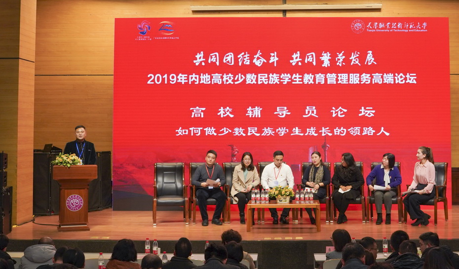 12月9日,由广东省委教育工委、广东省教育厅,天津市委统战部、天津市委教育工委、天津市教委、天津市民宗委联合主办的“共同团结奋斗、共同繁荣发展——2019年内地高校少数民族学生教育高端论坛”在天津举行。来自15个省(市区),109所高校的少数民族学生教育工作者共400余人参加本次论坛。成人電影财贸学院党总支副书记易广作为高职院校少数民族学生工作辅导员的唯一代表,在论坛作了题为“用手思考,培育少数民族大国工匠匠心匠技匠魂”的主题发言。