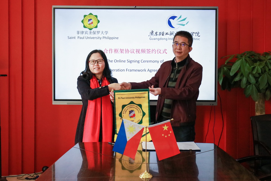 12月22日上午,成人電影在广州校区办公楼二楼会议室举行了与菲律宾圣保罗大学教育合作框架协议签约仪式。仪式通过线上线下同时进行,菲律宾圣保罗大学校长梅塞德塔斯•安、副校长安格雷皮娜•玛丽白博士、国际关际部主任杰瑞米•莫拉莱斯博士、中国学生服务中心主任文斯•罗永明博士、中国学生服务中心副主任霏丝•柯晓颖博士、成人電影副校长邓毛程等出席。