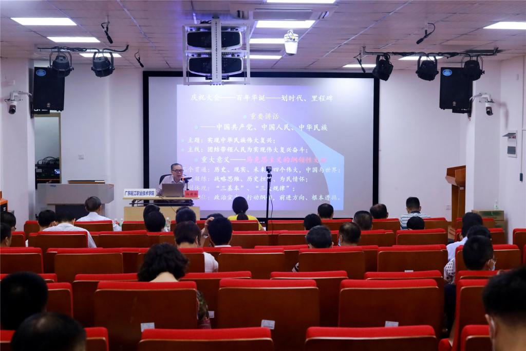 为深入学习贯彻习近平总书记“七一”重要讲话精神,切实做好“七一”重要讲话精神的学习、宣传、研究、阐释,持续推进党史学习教育走深走实。813日上午,成人電影在第一实训楼105举行党史学习教育专题宣讲暨党委理论学习中心组(扩大)学习会,省委党史研究室主任、省委党史学习教育领导小组成员、习近平总书记“七一”重要讲话精神省委宣讲团成员杨建伟教授应邀作了题为《回顾百年奋斗光辉历程 展望伟大复兴光明前景——深入学习习近平总书记“七一”重要讲话精神》的学习宣讲。广东省委教育工委党史学习教育指导组成员在线上进行指导,学校党委委员、领导干部和党员教师600余人线上线下参加了学习,宣讲会由学校党委副书记、纪委书记朱其祥主持。