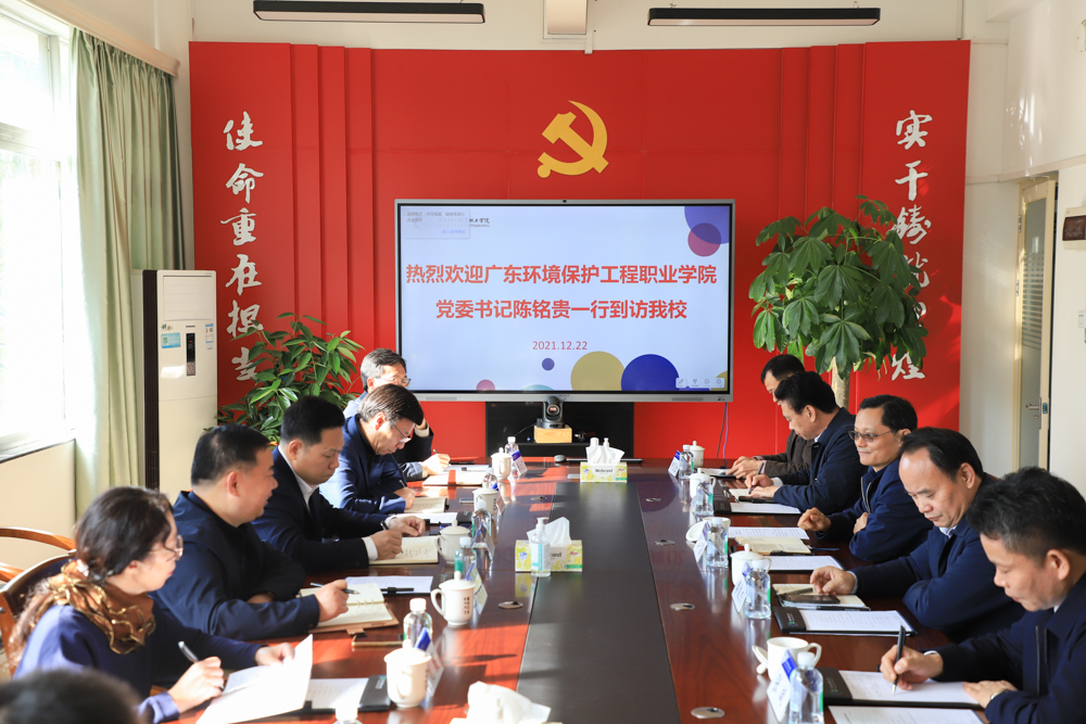12月22日上午,广东环境保护工程职业学院党委书记陈铭贵一行8人到访成人電影,学校党委书记杜安国、副校长廖俊杰在广州校区二楼会议室接待了客人,双方就“双高计划”建设等方面进行深入交流。