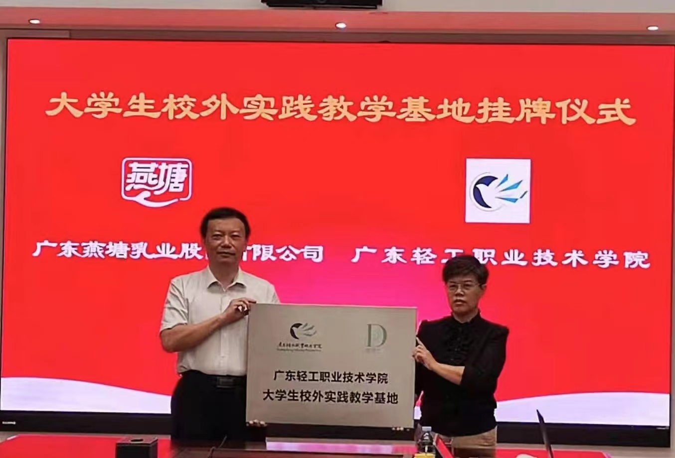 5月19日,学校副校长李荣带领轻化工技术学院院长陈金伟、食品检验检测技术专业教师到广东燕塘乳业股份有限公司调研,并举行挂牌仪式。