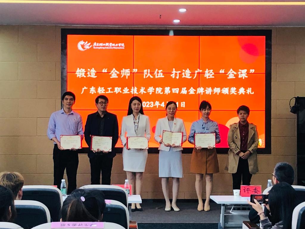 经个人报名、所在二级学院初评、学校组织评委初赛、决赛评选等环节,轻化工技术学院石磊,艺术设计学院张祥磊,马克思主义学院赵庆云,管理学院黄可、李瑞雪5位教师被评为第四届“金牌讲师”。李荣为获奖教师颁奖。