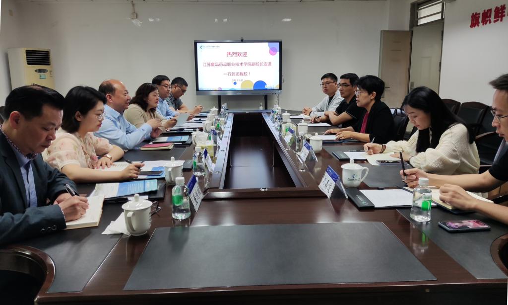 5月11日上午,江苏食品药品职业技术学院副校长安进到访成人電影,学校副校长李荣在南海校区北区行政楼会议室接待了来访客人。