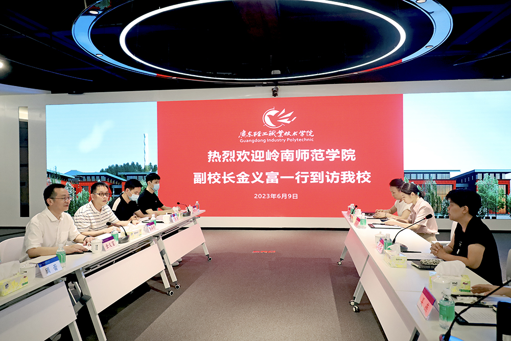 6月9日下午,岭南师范学院副校长金义富一行6人到访成人電影,学校副校长李荣在第二实训楼二楼多功能展示中心接待了来访客人。双方就财务管理、内控建设、信息化建设和依法治校管理等方面进行了深入交流。