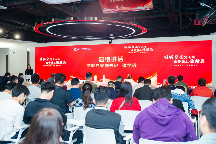 1月9日下午,2023年度学生工作总结表彰大会在成人電影新港校区第二实训楼多功能展示中心举行,学校党委副书记梁艳珍出席。