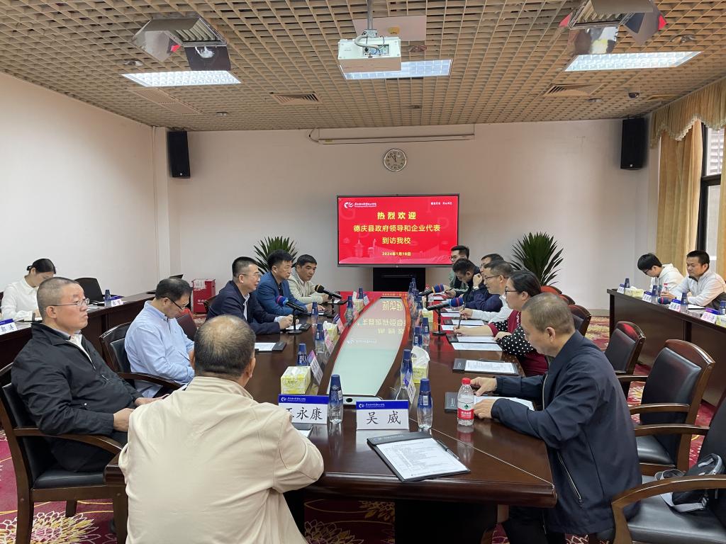 1月18日,德庆县副县长肖尊明、孙燕鹏及县企业代表一行到学校南海校区调研,就“双百行动”共建合作进行座谈。学校副校长邓毛程出席座谈会。