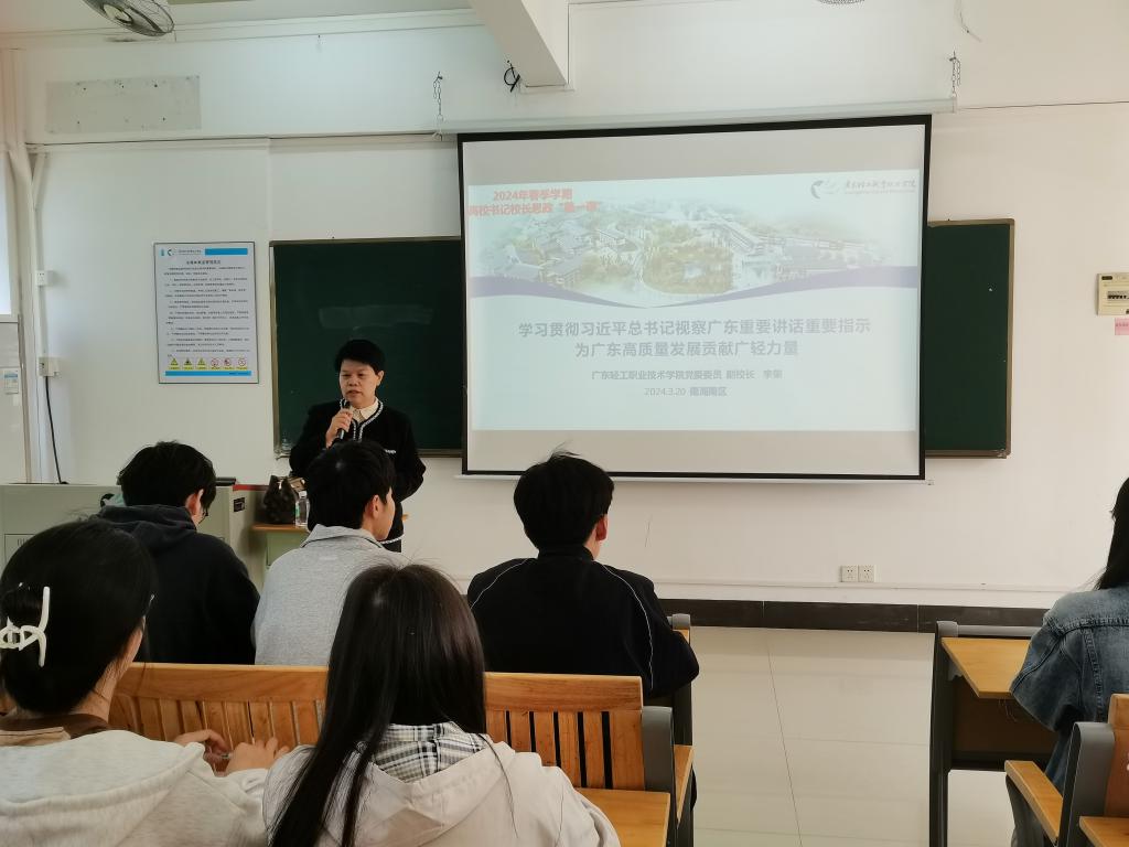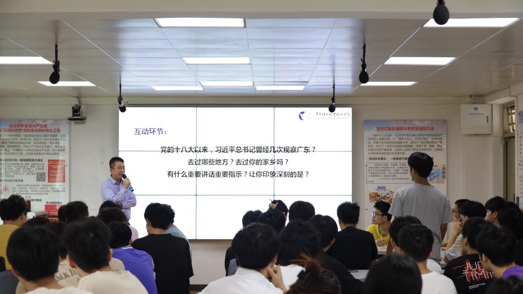3月28日上午,邓毛程在南海校区北区行政办公楼3304课室,以“学习贯彻习近平总书记视察广东重要讲话重要指示为广东高质量发展贡献成人電影力量”为主题,为工业互联网221班和222班的同学们讲授新学期“思政第一课”。邓毛程引导同学们深刻领悟习近平总书记对广东的殷殷嘱托,勉励同学们汇聚青春正能量、争当时代生力军。