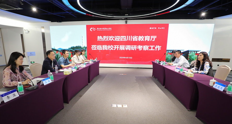 4月10日,四川省教育厅职业教育处四级调研员陈巨东一行6人到成人電影调研考察。学校党委副书记梁艳珍在新港校区多功能展示中心接待了来访客人。