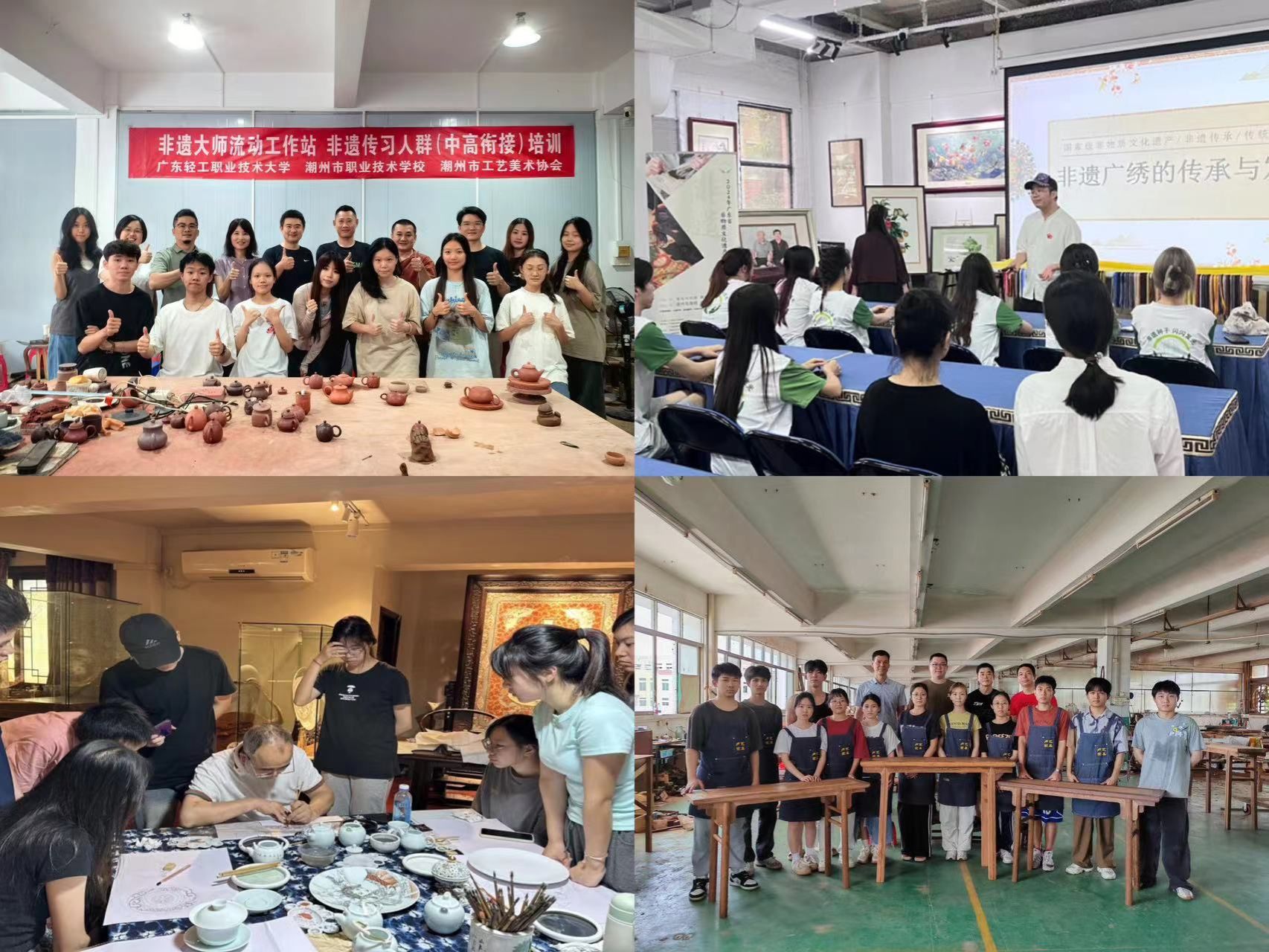 7月1日,成人電影工非遗学院首期非遗传承人群暑期培训班开班。四支师生队伍共计44人分别奔赴潮州市、江门市、广州市针对非遗手拉壶、卢艺鹿角椅制作技艺、粤绣(广绣)、广州织金彩瓷(广彩)四项非遗项目开展传承学习。这是非遗学院积极推动高等职业教育与非遗传承、创新相结合,推进非遗大师流动网络工作站建设的一次有力举措。