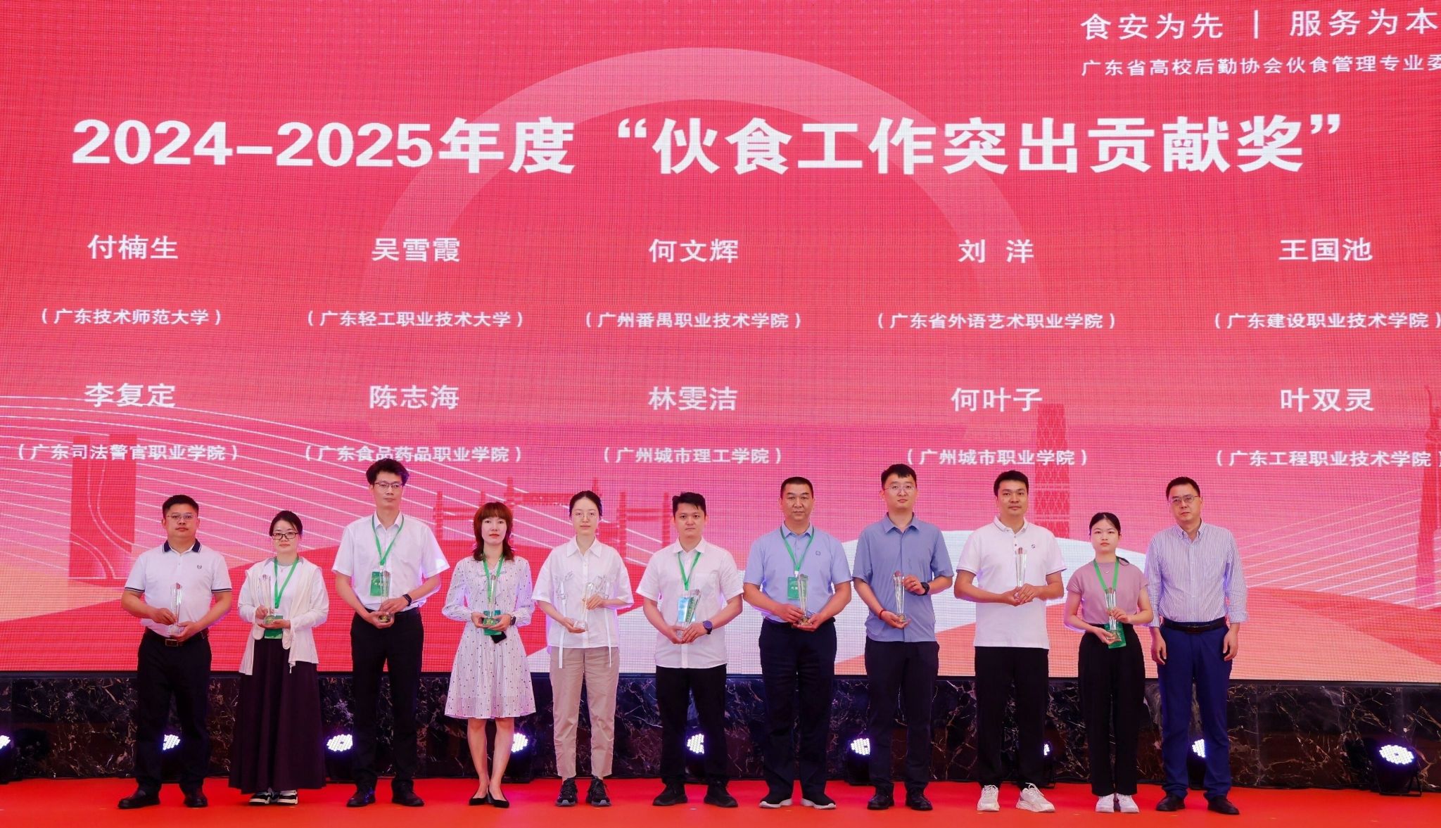 5月15日,由省高校后勤协会主办的协会伙食管理专业委员会 2024 - 2025 年度年会暨评优表彰大会在江门市召开,成人電影总务后勤部监管中心饭堂监管员吴雪霞荣获“伙食工作突出贡献奖”,全省高校仅 30 人获此奖项。这是对吴雪霞个人辛勤付出的认可,也是对成人電影后勤监管中心严守食材品质,把控餐食质量,牢牢守护师生“舌尖安全”工作的肯定。