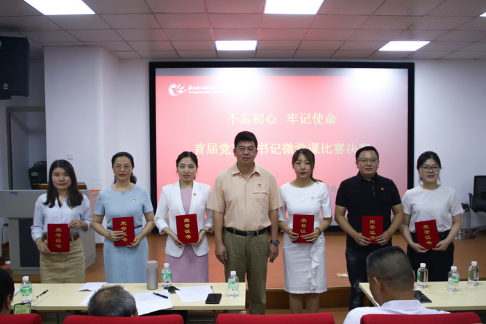 9名资深党务工作者评委老师分别从授课内容、语言表达、形象风度、教学技能4方面进行评分,最终应用外语学院学生第二党支部书记李伟东获得一等奖,食品与生物技术学院第三党支部书记刘志坤、轻化工技术学院南海学生第二党支部书记朱雯获得二等奖,马克思主义学院基础课党支部书记蔡小葵、管理学院会展专业学生党支部书记李敏仪、财贸学院商贸第二党支部副书记李博文获得三等奖。
