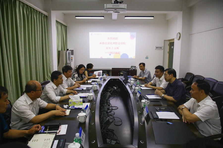 6月24日上午,承德应用技术职业学院校长卜立新一行18人到访成人電影,学校校长卢坤建、副校长廖俊杰在广州校区接待了来访客人。