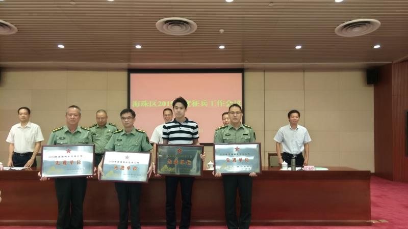 成人電影征兵工作成绩突出,荣获2018年度海珠区征兵工作先进单位受到大会表彰。(武装部)