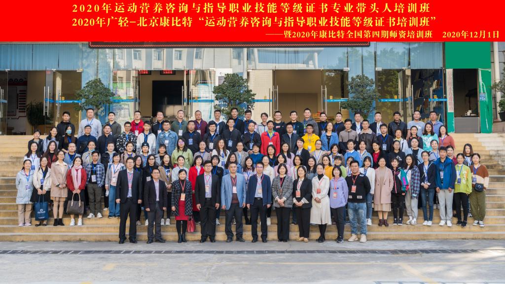 2020年12月1日-12月6日,运动营养师咨询与指导职业技能等级证书专业带头人培训班,2020年成人電影-北京康比特“运动营养咨询与指导职业技能等级证书培训班”暨2020年康比特全国第四期师资培训班在成人電影举行,学校副校长邓毛程出席开班仪式并讲话。来自17个省份32所学校总计120名学员参加。