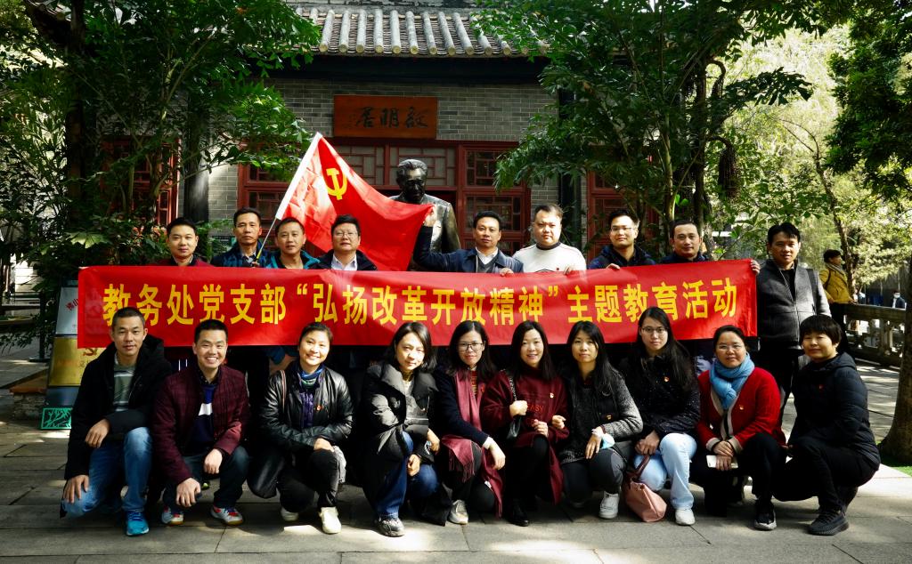 为落实“学习习近平总书记出席深圳经济特区建立40周年庆祝大会和视察广东重要讲话重要指示精神”,充分发挥教师党员先锋模范作用。12月20日,教务处党支部组织全体支部党员赴清晖园邓小平纪念馆参观学习,开展弘扬改革开放精神主题教育活动。